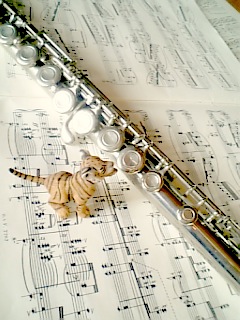 フルートは大きく、写真に入りにくく苦労しました。しかも金属なのでライトを反射します。