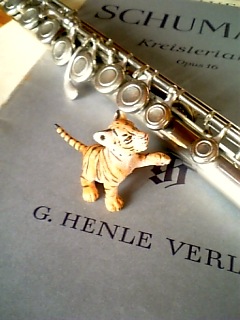 フルートの楽譜はほとんど持たないので、下に敷いてる楽譜はピアノ譜です。ラベルを二冊、シューマン、ショパン。フルートは長いので、テーブルにいっぱい敷き詰めて撮影です。