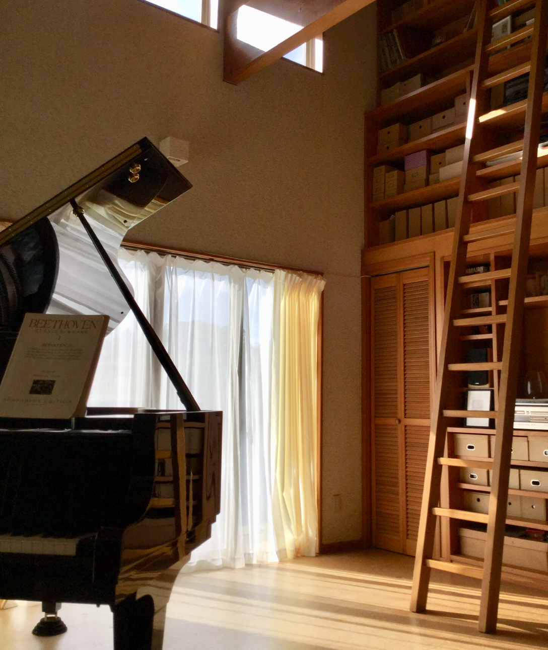 コロナで大変な時期ですが、以前から計画していた引越しが出来そうです。うちの校区の小学校や、バス停から徒歩1分と、最高の立地です。その代わりと言っては何ですが、狭くなります。この広くて、天井高6メートルのレッスン室ともお別れです。