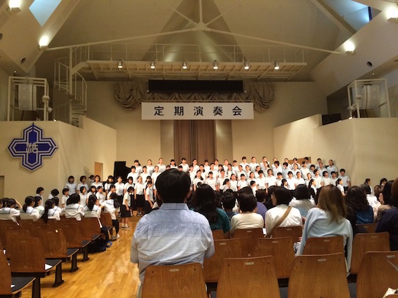 娘は音楽が盛んな学校に行ったので、定期演奏会なんかもありました。普通科の子も混じって、ハンドベルや合唱してました。ピアノや歌、その他色んな楽器の独奏もあって、なかなか楽しめます。しかし、講堂がすごくきれいですね。