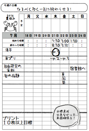 夏休み宿題表ダウンロード