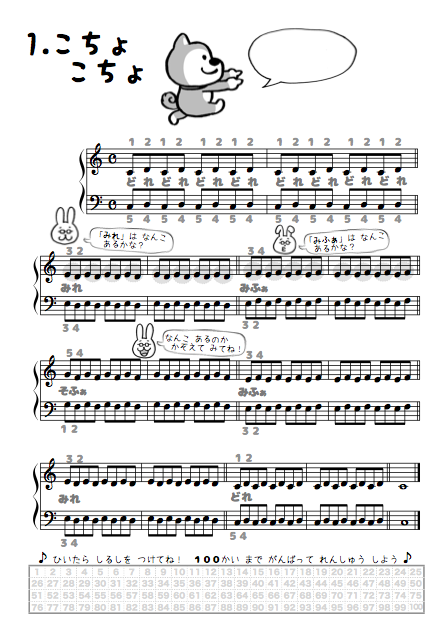 下に100マス表もあるので、1回弾いたら印やスタンプで、やる気スイッチを出して下さい。100回達成したら、是非ご褒美をお願いします!