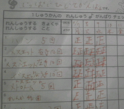練習が目に見えると、子どものモチベーションも上がるし、親も、先生がいないとき、家で指導するのにわかりやすくていいようです。