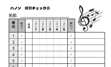 ハノン表ミニ(切って使うタイプ)ダウンロード