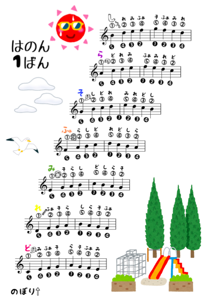 ※最後の4小節をくり返してます。子供さん用楽譜にリピート記号を書き込んで下さい。