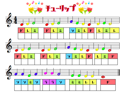 弾く前にフラッシュカードなどで色と音符の音などをイメージで覚えてもらってます。