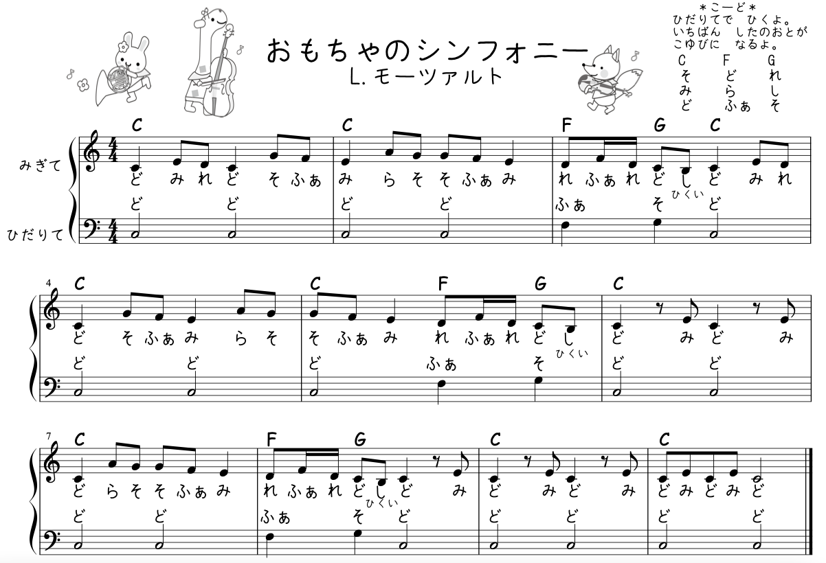 小さい子に教えるときは、カラーふせんを鍵盤にはって、同じ色を音符にも塗ったりして弾いてもらってます。