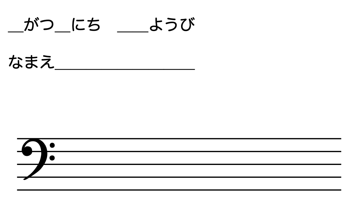 リクエストでヘ音記号の五線のみのフラッシュを作りました。何も書いてないので、自分で音符や答えを書き込んで使用してください。