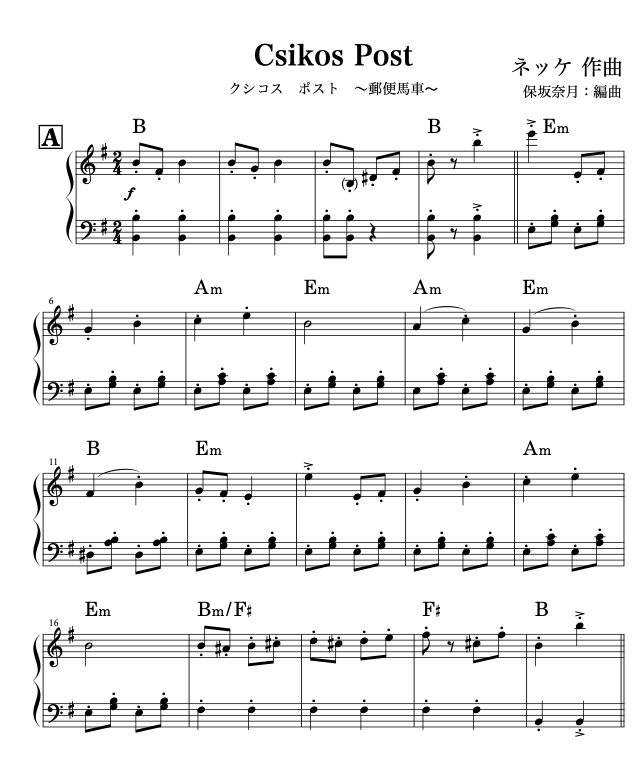 生徒さんのリクエストで作りました。レベルはバイエル後半程度だと思いますが、オクターブが出てくるので手が小さい人は音を削ってください。なるべく動きをおさえて簡単にしてますが、演奏映えすると思うので、特に右手を頑張って練習するとうまくいきますよ。